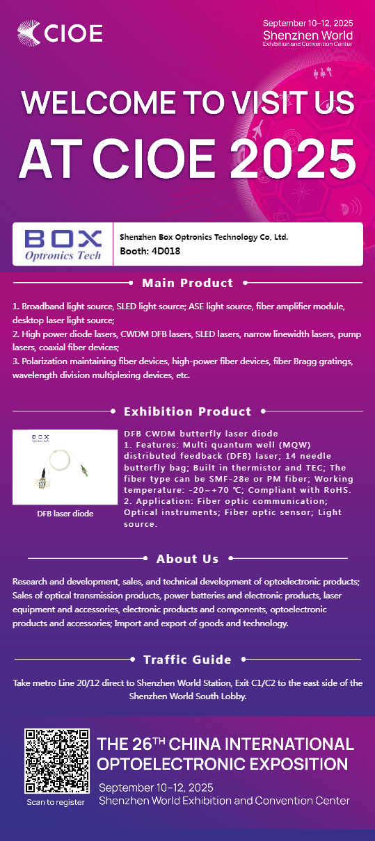 Copyright @ 2020 Shenzhen Box Optronics Technology Co., Ltd. - Módulos de fibra óptica de China, fabricantes de láseres acoplados fibra, proveedores de componentes láser todos los derechos reservados.